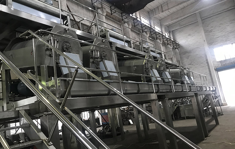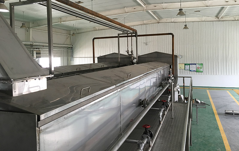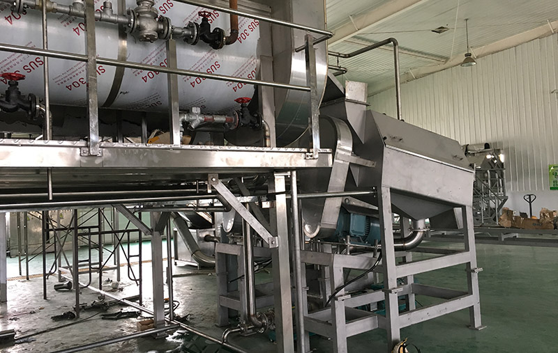 4.预煮:进料螺杆泵将经过清洗挑拣的红枣推送入预煮器,通过蒸汽直接加热,将红枣的温度从常温加热到80-85℃,使红枣充分提取浸泡。以便下一道工序的进行。